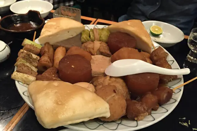 Los platos se cocinan con cuidado y respeto por los ingredientes de temporada, desde sencillas tiendas de yakitori que sirven brochetas de pollo a la parrilla hasta banquetes tradicionales kaiseki de varios platos.