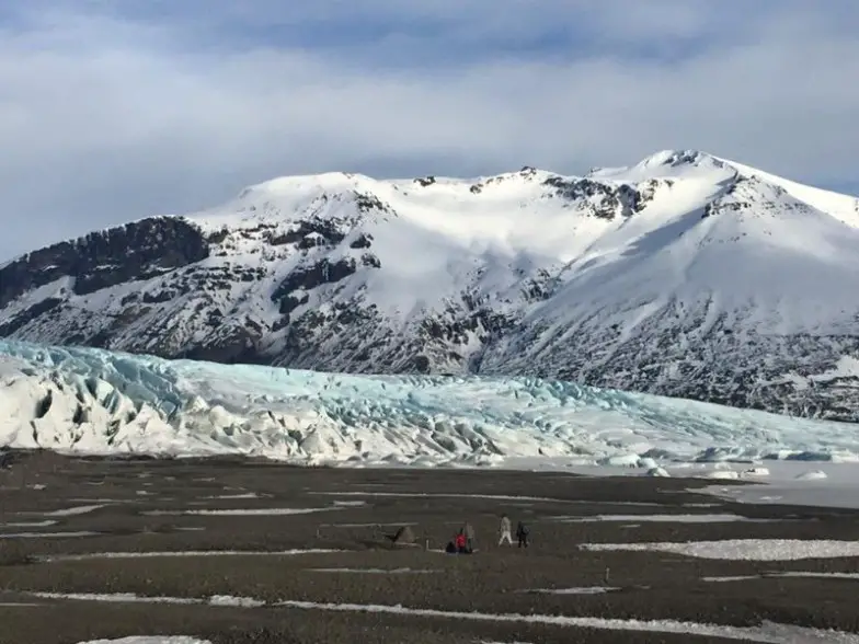 Mientras regresábamos a Reykjavik, caminamos hasta una de las lenguas glaciales, el glaciar Falljökull, que se extiende como largos dedos desde Vatnajökull, el más grande de toda Europa. Una vez más, nuestras esperanzas de ver las luces se desvanecieron esa noche, cuando se avecinaba una tormenta. El viento comenzó a aullar y los pequeños copos de nieve que bailaban en el aire de la noche se hicieron más y más grandes, apilándose en la carretera, lo que me hizo agradecer que habíamos tenía un conductor experto.