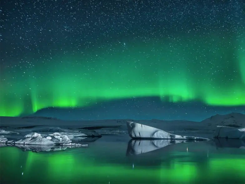 Con cielos despejados y temperaturas frías, estaba seguro de que veríamos las luces esa noche, pero como explicó nuestro guía, la falta de actividad solar significaba que no teníamos suerte. Por supuesto, no todo estaba perdido. Con otra hermosa mañana, visitamos la famosa Laguna Glaciar y escuchamos los atronadores sonidos del hielo rompiéndose, chocando contra el agua creando una poderosa ola que rompió la quietud.