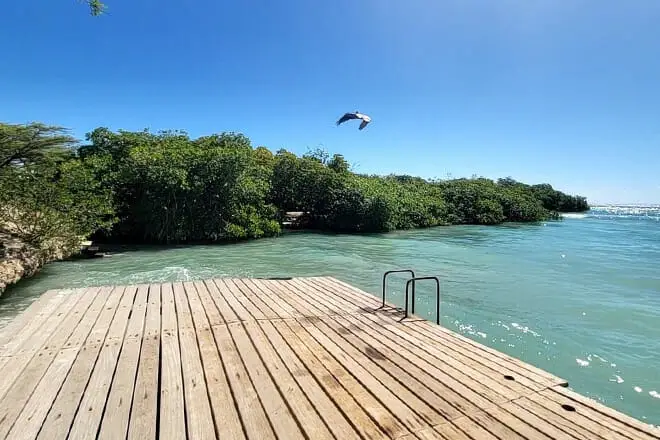 La playa también alberga los famosos árboles fofoti de Aruba, que brindan oportunidades únicas para tomar fotografías y un toque de belleza natural.