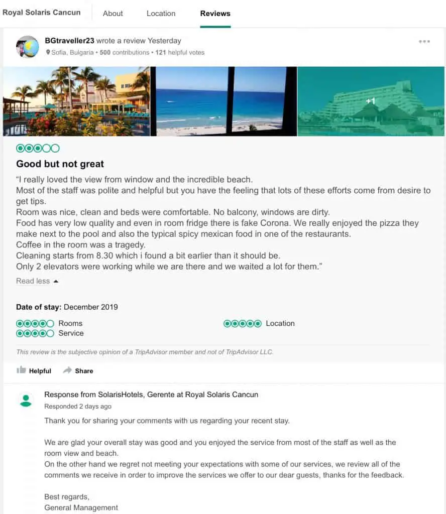 Encontré algunos comentarios de huéspedes que describen sus experiencias en el Hotel Royal Solaris en Cancún.