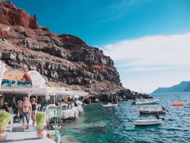 Santorini es muy similar, con un buen equilibrio de experiencias gastronómicas escénicas y comidas rápidas, paradas menos costosas que aún se centran en los favoritos como el falafel y las verduras frescas. Rakadiko Meraki es una experiencia más costosa con un hermoso entorno, un risotto celestial y un pastel de miel que haría que uno viajara de regreso a Santorini por sí solo.