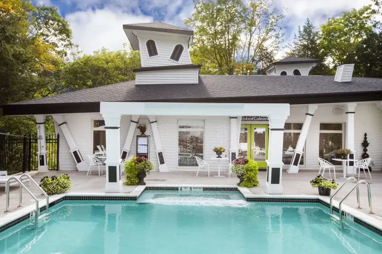 Los pequeños detalles completan una experiencia completamente placentera, desde los platos de desayuno delicados pero hermosos, hasta una amplia variedad de selecciones de bebidas alcohólicas disponibles en su habitación, si tiene 21 años. El motel cuenta con un deslumbrante spa con bañera de hidromasaje, sauna seca y una gran área de vapor hecha 100% de vidrio de parabrisas de automóvil verde reciclado; el acceso se puede agregar por $ 20 por persona, por estadía completa. The Crooked Cabana (literalmente y es tan extravagantemente hermosa) en Stratton Falls ofrece acceso a la piscina, una sauna seca y una bañera de hidromasaje. Nos sentimos relajados al leer acerca de todas estas comodidades.