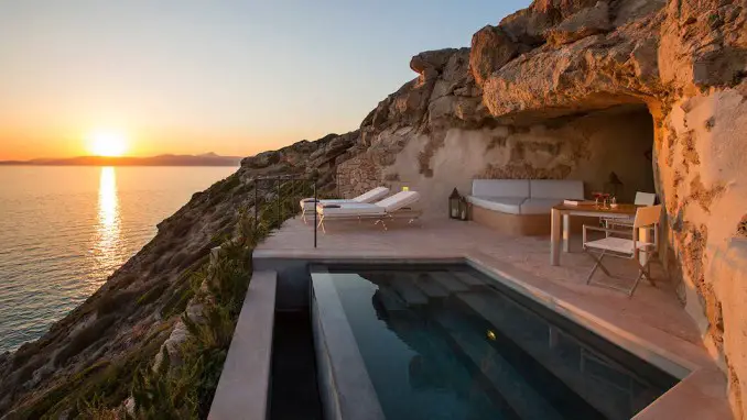 Una soberbia rehabilitación de una impresionante fortaleza del siglo XIX ha dado como resultado Cap Rocat, un cautivador hotel boutique solo para adultos con vistas a la Bahía de Palma. Ubicado en 88 acres y extendiéndose a lo largo de la costa por dos kilómetros (1,2 millas), el espectacular hotel (uno de los mejores de España) ofrece a sus huéspedes una selección de lugares mágicos para cenar, playa privada de acantilados con acceso directo al mar, embarcadero y piscina de agua salada. Maravillosamente aislado con un puente levadizo, búnkeres y suites en antiguos arbotantes, el ambiente es a la vez histórico y romántico. Decoradas con una combinación inteligente de muebles clásicos y contemporáneos, las suites tienen su propio patio privado con hermosas vistas al mar.