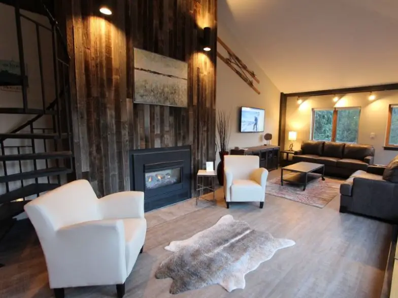 Modern vibes replace the rustic cabin feel in this 9-person getaway, but that mountain feel is still captured. Being one of Passage Point’s condos, guests staying here will be able to wind down after a day skiing, by soaking in one of the three hot tubs.
