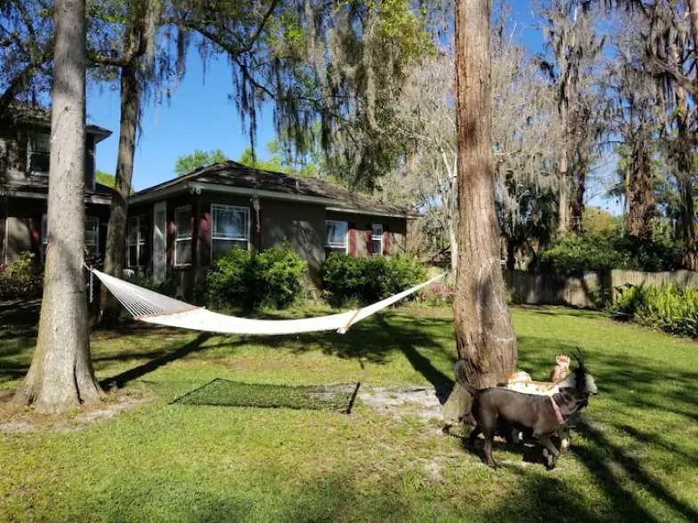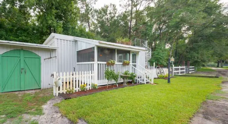 Available to rent through Vrbo, this farm stay is eight minutes from downtown Sanford and within five minutes of the Orlando/Sanford International Airport. It was built in 1910 and has one bedroom and one bathroom to accommodate four people. This is a nice farm stay to be at if you’re looking for a central location in Florida and to be near major theme parks, beaches, and local attractions. Within 45 minutes, you can get to the Disney theme parks, Universal Studios, and New Smyrna Beach. The host family lives in the main house, but this rental is a separate section of the house with its own private entrance.