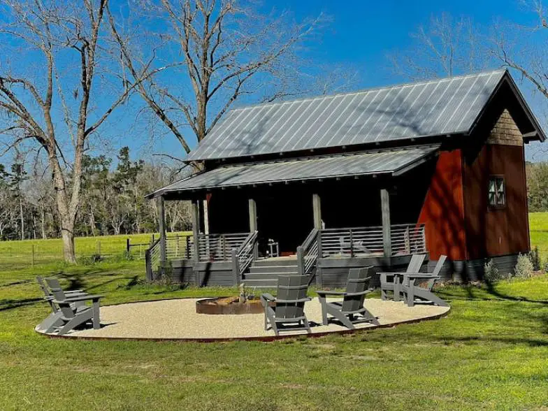 Enjoy your own private farmhouse with natural springs about 1.5 miles away with this Airbnb rental for two guests. Features of this rental are the outdoor kitchen, sparkling pool, queen-size bed, Wi-Fi, and laundry machines. Make sure to bring your bathing suit for the pool! Fun things to do in this local area are cave diving, dining out at restaurants, and browsing the farmers’ market and antique stores.