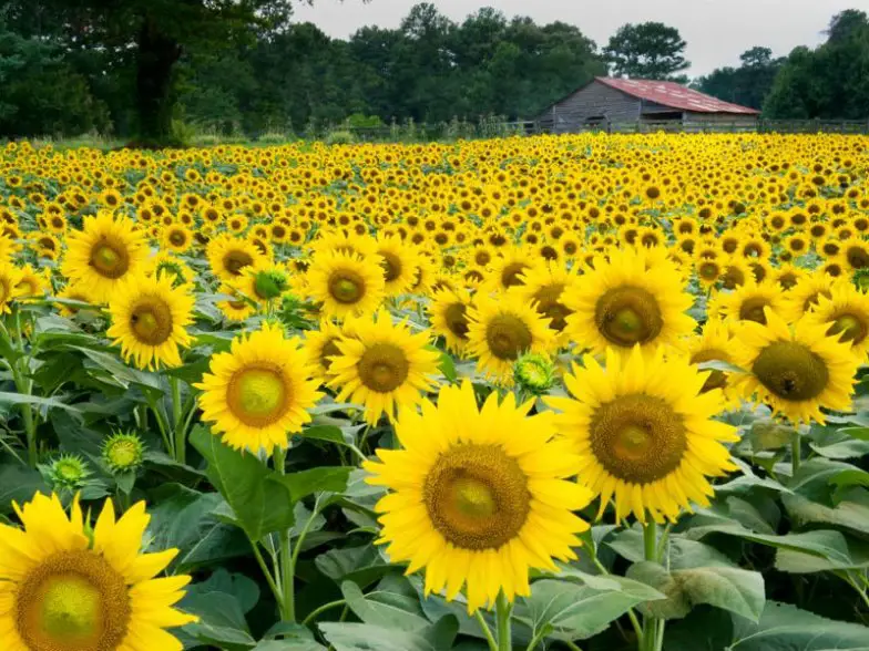 Los girasoles son una de las flores más icónicas de Estados Unidos y puedes experimentar su vibrante belleza este julio en Cumming, Georgia. Ahora propiedad de Dennis Anderson, Anderson's Sunflowers es una granja, un hito local y un lugar histórico. Los campos aquí se usaron originalmente para el maíz y el trigo hasta la década de 1980, cuando comenzó una nueva tradición de plantar girasoles.