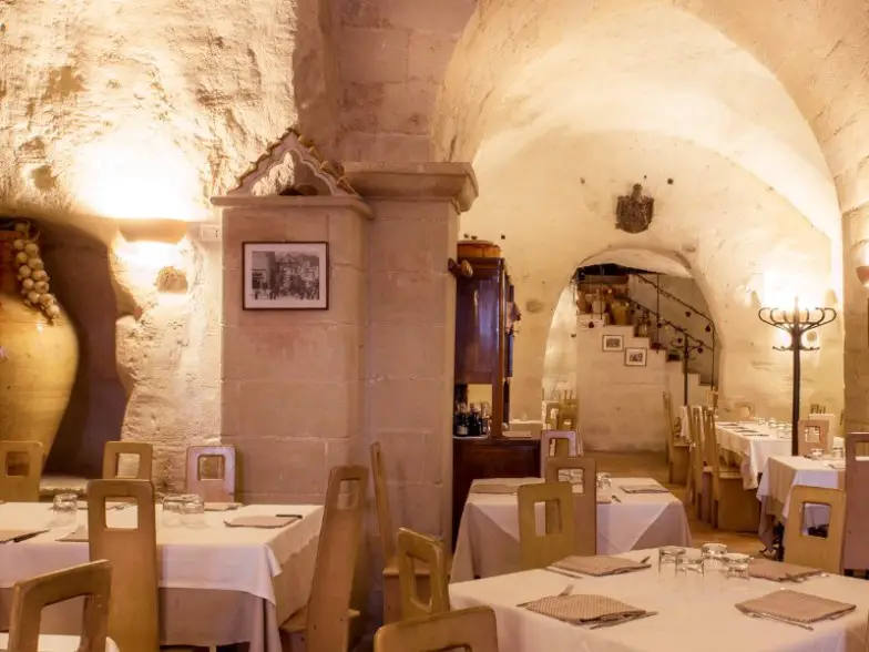 Hay muchos restaurantes destacados que ofrecen auténtica comida italiana, como Oi Mari, situado en el corazón de Sassi di Matera, un restaurante acogedor e íntimo que se especializa en auténticas pizzas al estilo de Nápoles, junto con otros platos favoritos de la región del sur de Italia, como mariscos frescos y pastas rellenas