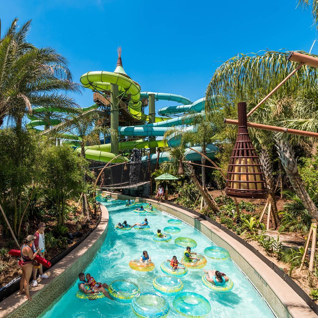 La laguna Puka Uli en Rainforest Village es un gran lugar para llevar a los niños, ya que la piscina de entrada cero es un gran lugar para que los más pequeños se relajen. Tot Tiki Reef en River Village tiene fuentes de agua rociada, toboganes y un volcán para niños pequeños, mientras que los niños de todas las edades pueden visitar Punga Races para montar mantarrayas a través de cuevas marinas submarinas.
